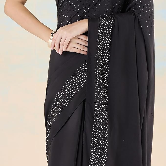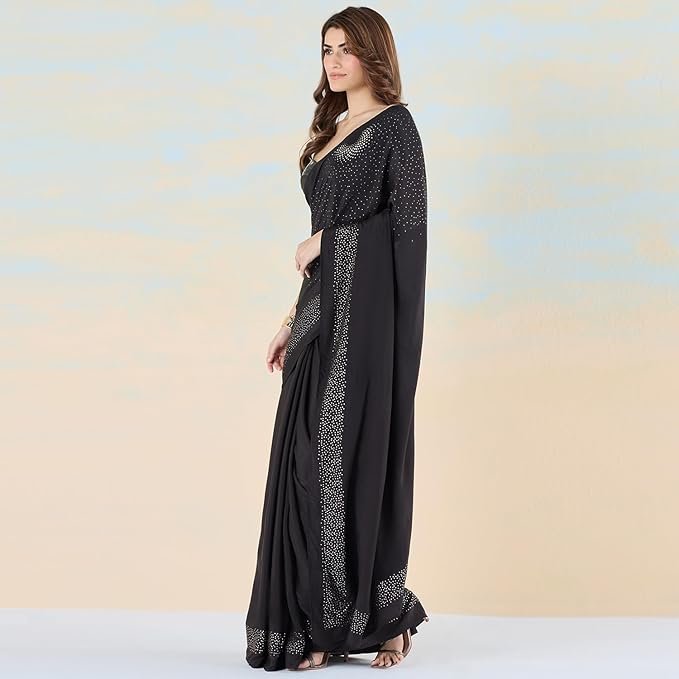 Black liva crepe foil saree