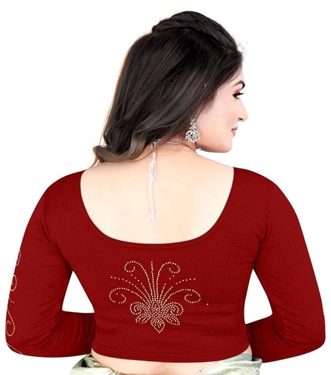 Full Diamond Stylish Readymade Stitched Stretchable Blouses, Readymade Cotton Lycra Round Neck Full Sleeve Blouse for Women