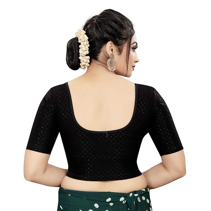 Round Neck Dobby Cotton Lycra Stretchable Elbow Sleeve Readymade Saree Blouse for Women Stylish (Free Size)