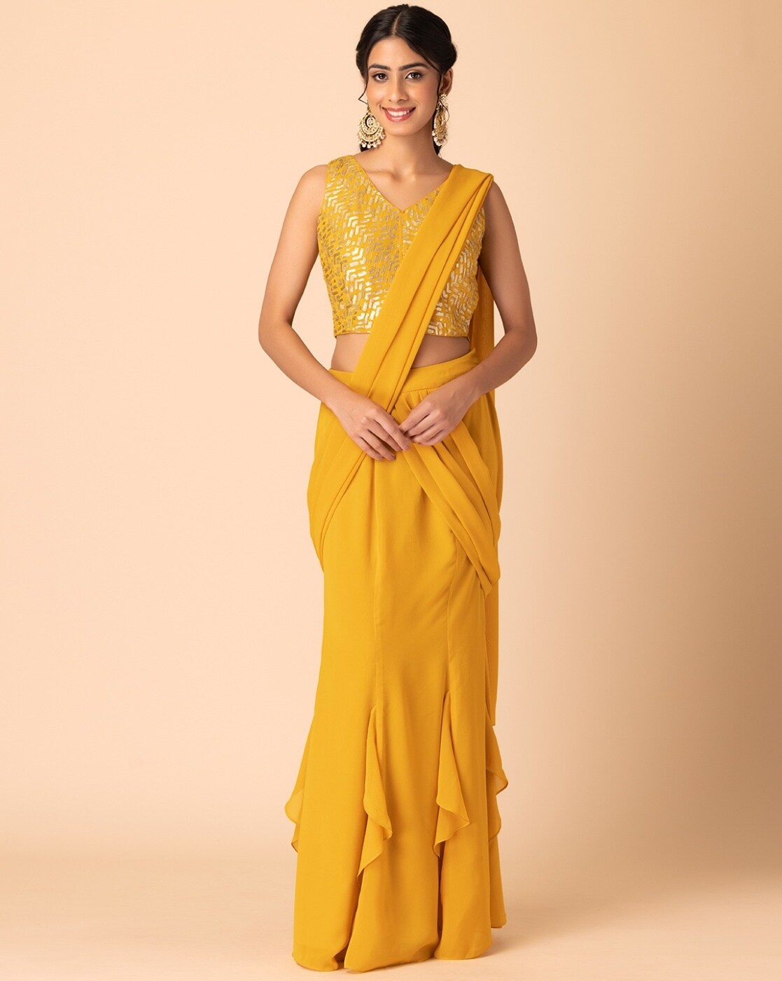 Set of 2 Women Ready to Wear Saree with Sequin Thread Embroidered Blouse