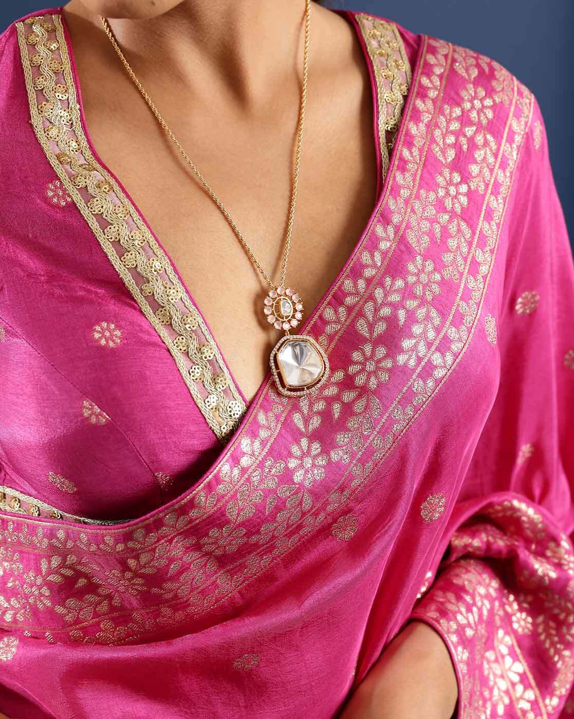 - The last image gives a detailed look of the blouse piece that comes with this saree (The model is wearing a blouse from our in-house wardrobe)