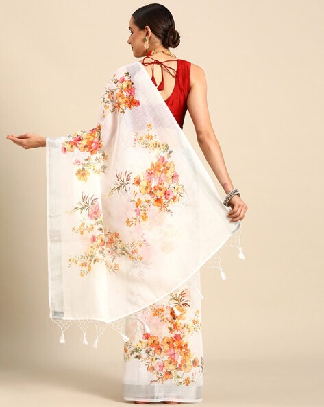 - The last image gives a detailed look of the blouse piece that comes with this saree (The model is wearing a blouse from our in-house wardrobe)