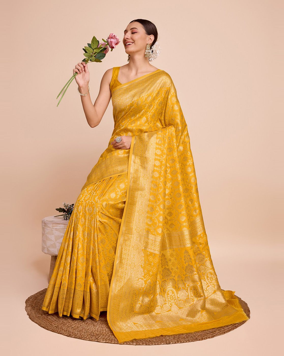 - The last image gives a detailed look of the blouse piece that comes with this saree (The model is wearing a blouse from our in-house wardrobe)