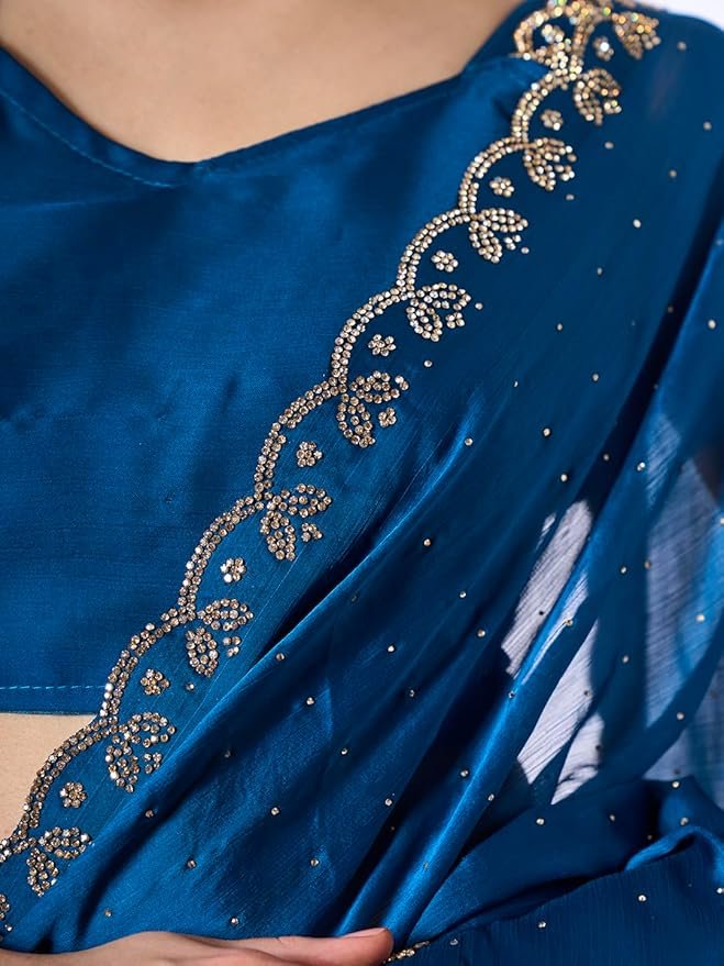 Women's Georgette Embroidered Saree With Unstitched Blouse