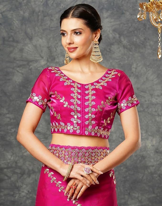 Women's Georgette Embroidered Saree With Unstitched Blouse